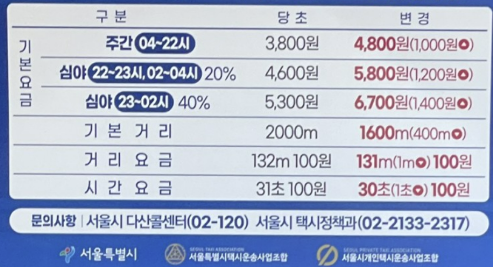 | 거리요금 | 132m 100원 | 131m 100원 | -1m | |
