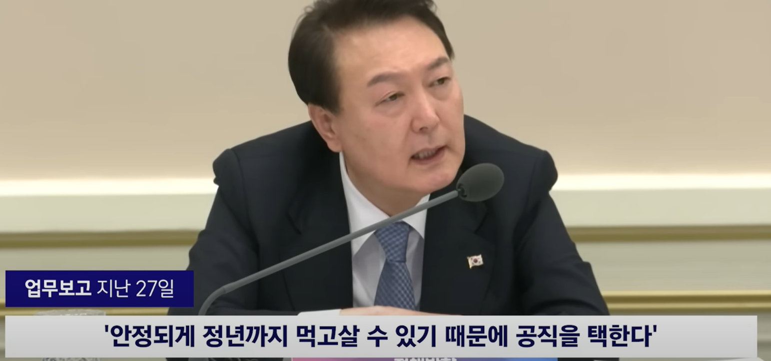 윤석열 대통령은 공무원의 임금 체계를 이른바 철밥통에 비유한 바 있습니다. "철밥통이라는 이런 인식 안정되게 정년까지 먹고 살 수 있기 때문에 공직을 택한다 아 저는 그런 공무원 별로 환영하고 싶지 않습니다."